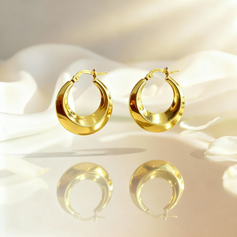 Zlatne naušnice odlikuju se sofisticiranim i elegantnim dizajnom koji se savršeno uklapa uz svaki stil. Njihova profinjena estetika i suptilan sjaj čine ih idealnim izborom za posebne prilike, ali i za svakodnevno nošenje. Lako se kombinuju s drugim komadima nakita, dodajući dozu luksuza i ženstvenosti svakoj odjevnoj kombinaciji.