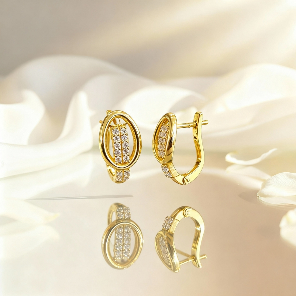 Materijal: Zlato 585 (14 karatno) – Zlatne naušnice izrađene su od 14-karatnog zlata, poznatog po svojoj eleganciji, trajnosti i postojanom sjaju. Sadrže 58,5% čistog zlata, dok preostali dio čine pažljivo odabrani legirani metali koji osiguravaju čvrstoću i otpornost. Naušnice su lagane, udobne za nošenje i idealne za svakodnevnu upotrebu. Zadržavaju svoj raskošan sjaj i profinjen izgled i nakon dugotrajnog nošenja. čineći ih savršenim dodatkom svakoj kombinaciji – od dnevne elegancije do večernjeg sjaja.